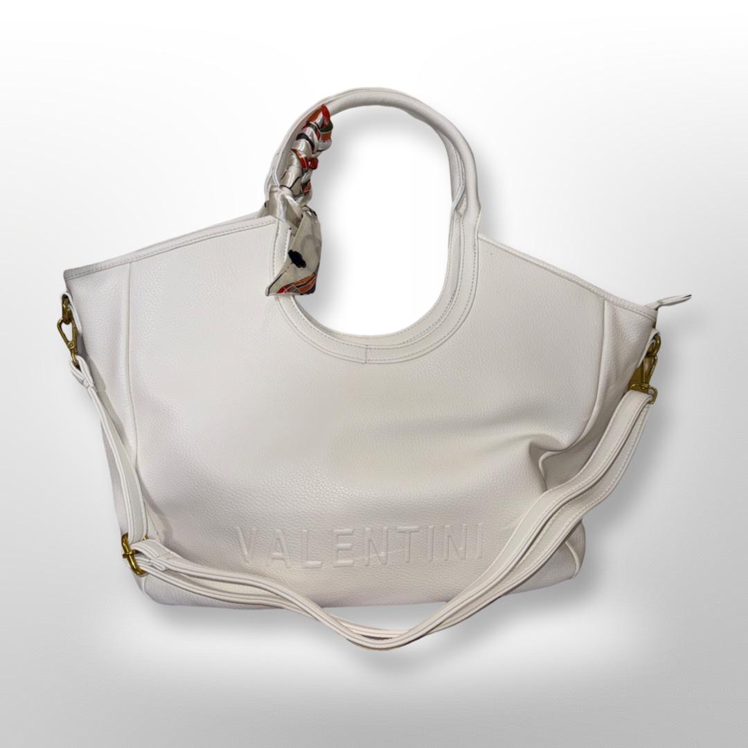 Weisse Shopper - Handtasche mit Stoffelement am Henkel - Praktisch und Stilvoll.