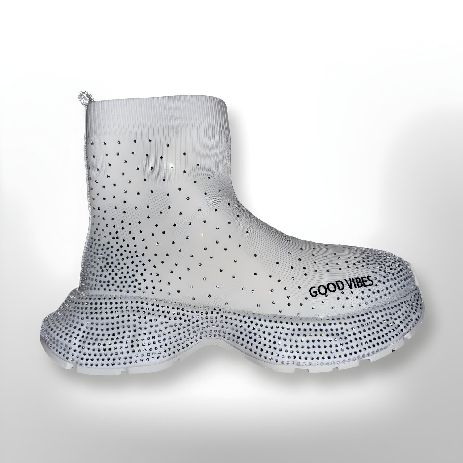 Diese wunderschönen weißen Schuhe mit Strass vereinen zeitlose Eleganz mit einem Hauch von Glamour. Das edle Design wird durch fein platzierte, funkelnde Strasssteine perfekt ergänzt, die für einen luxuriösen Look sorgen.