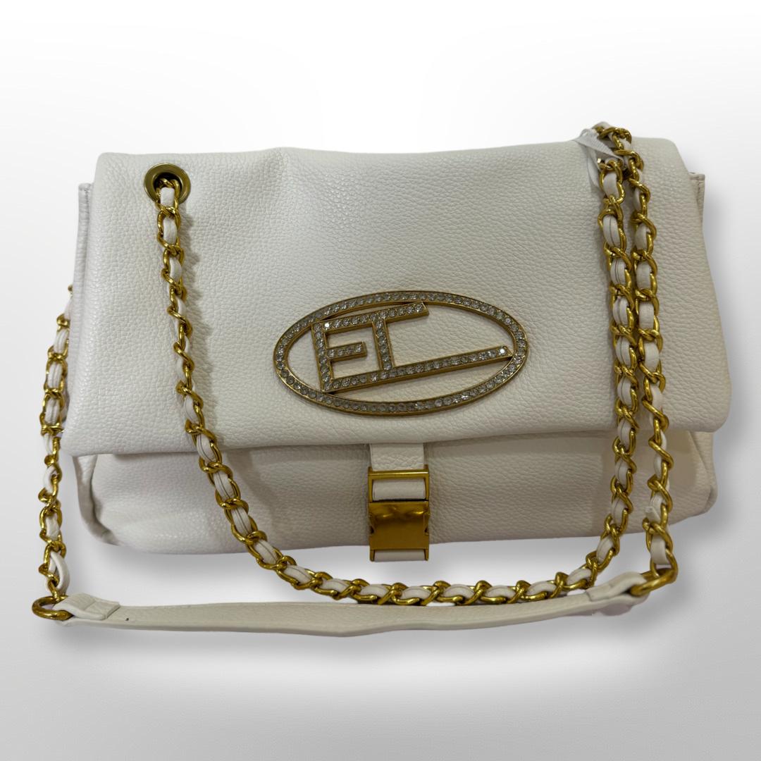 Handtasche mit goldenen Elementen im Gurt & Designer Logo - Luxus & Eleganz