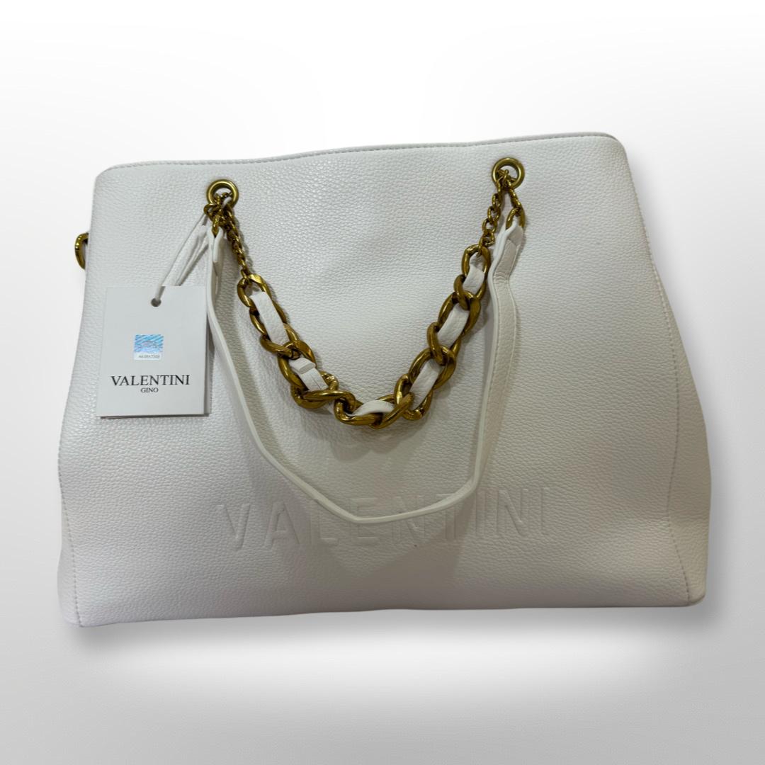 Weisse Handtasche mit goldenen Element am Henkel - Praktisch und Stilvoll.